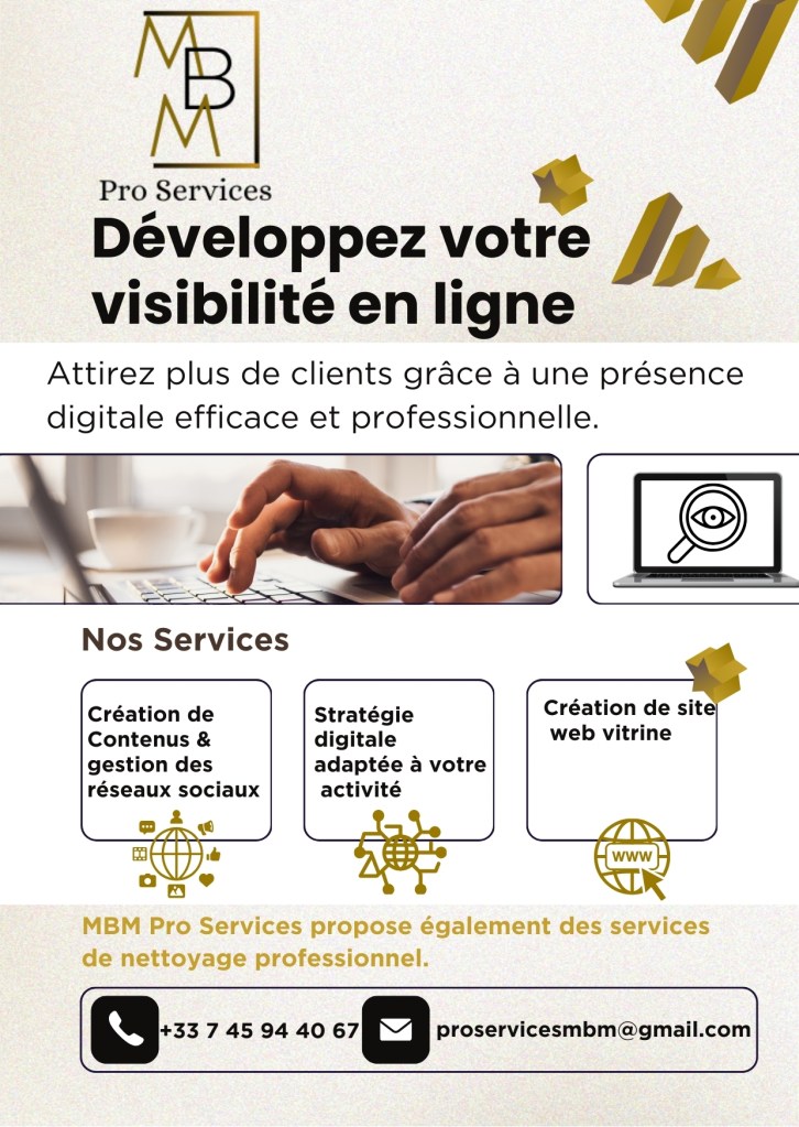 Création de sites web, contenu et stratégie digitale; nettoyage de bureaux, commerces et chantiers après travaux. MBM Pro Services accompagne les professionnels. Devis rapide.