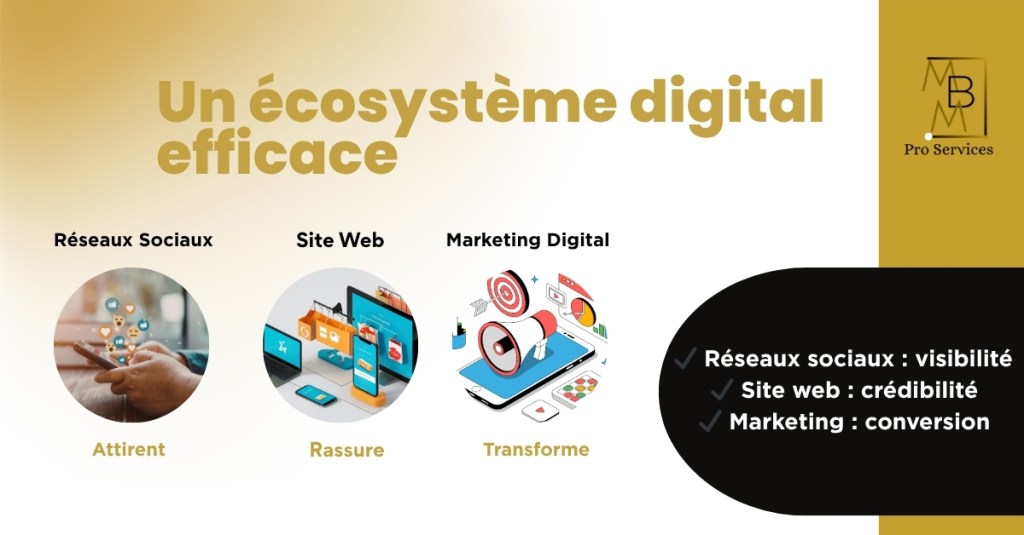 Une entreprise qui souhaite évoluer durablement a besoin d’un écosystème digital structuré, combinant visibilité, crédibilité et stratégie marketing.